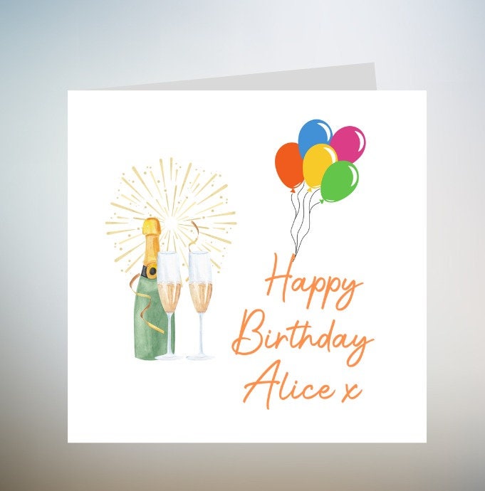 Beautiful And Elegant Female Birthday Card Balloon Design, Personalised Name 6x6