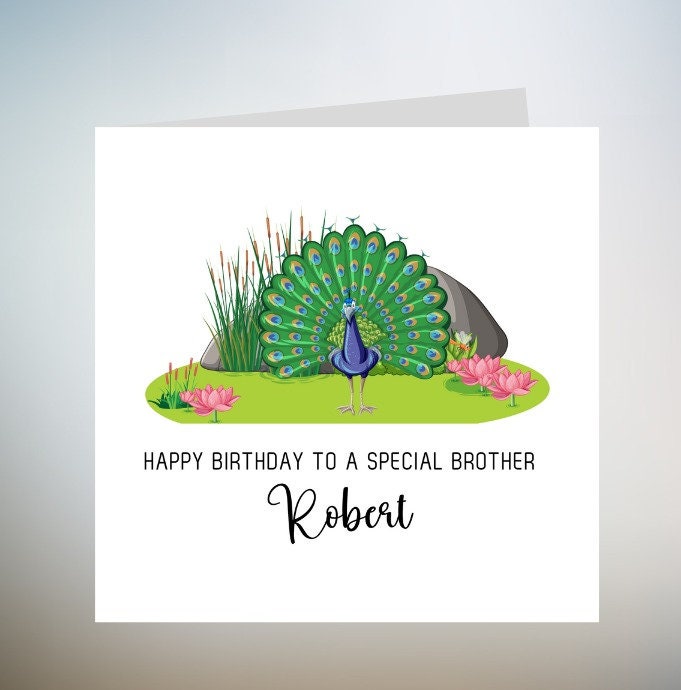 Colourful Peacock Birthday Card, EDITABLE TEXT. Peacock greetings card, Peacock gift 6x6