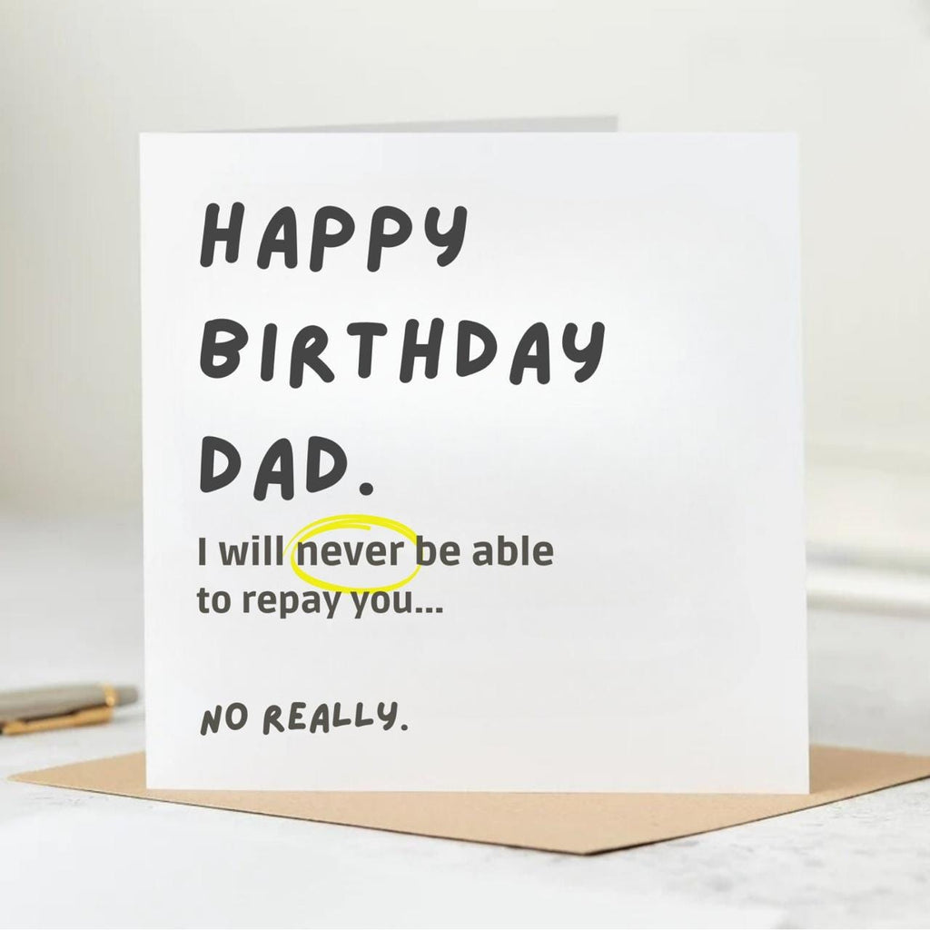 Dad I Can Never Repay You - Funny Birthday Card for Dad - Personalised Card 6x6