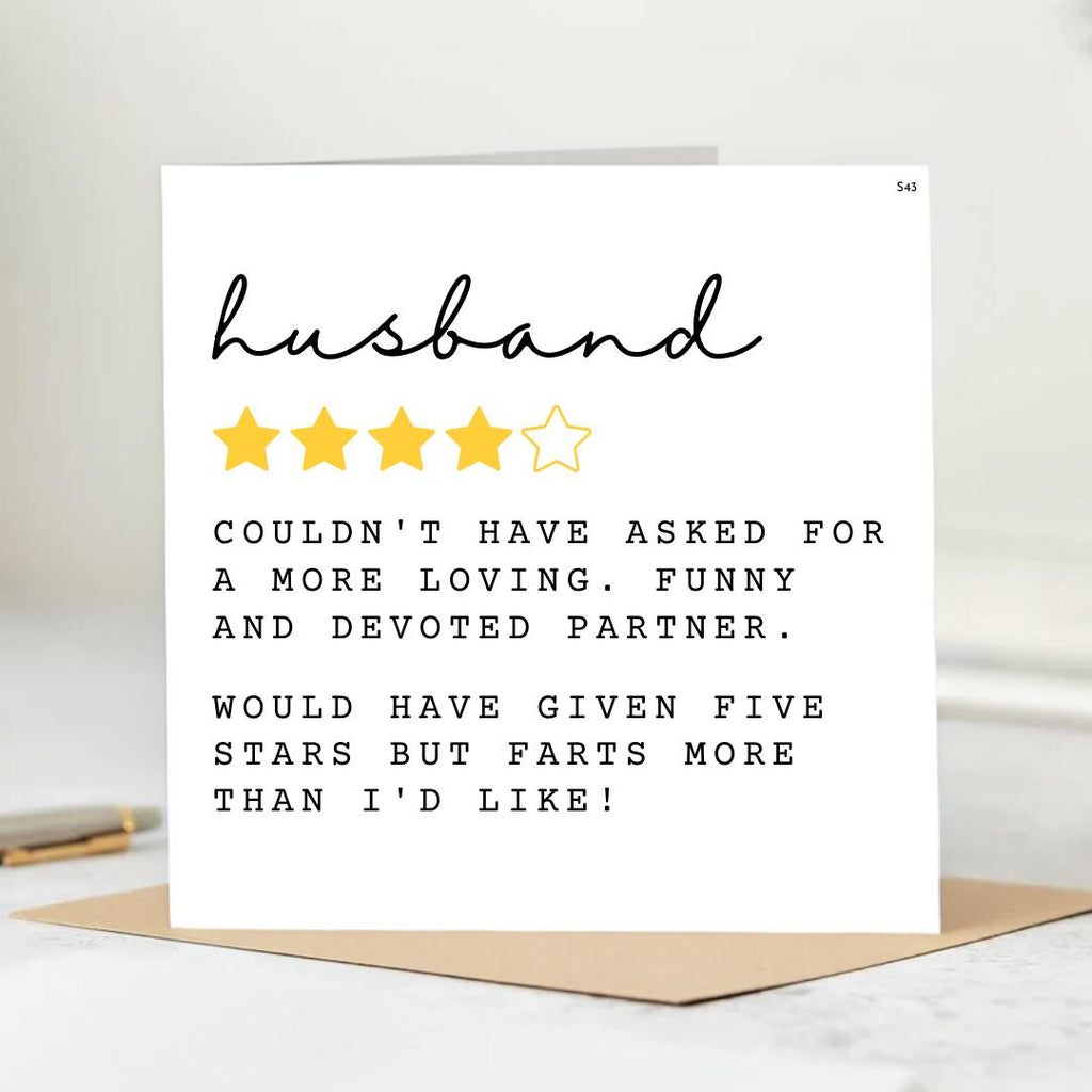 Funny Husband Birthday Card – 4 Star Review – Loving but Farty!