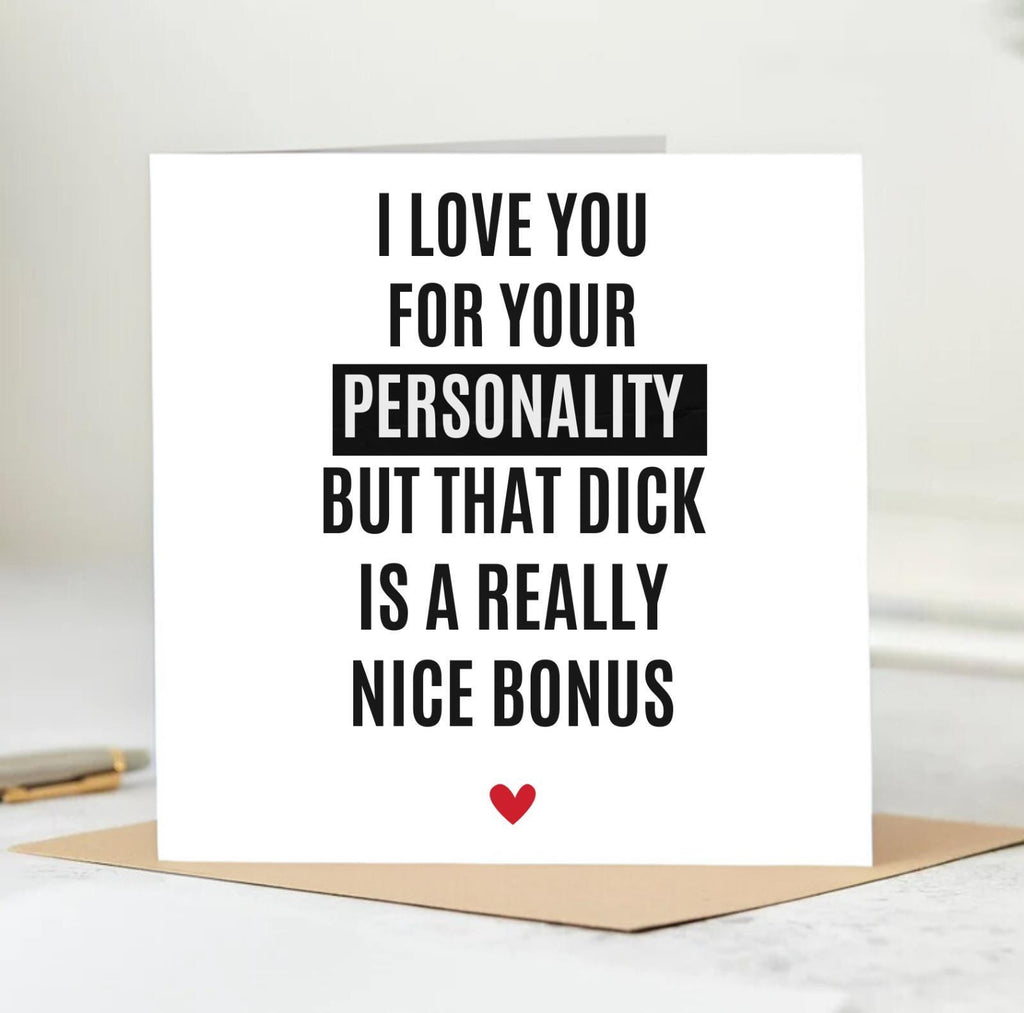 I Love Your Personality But That Dick is a Huge Bonus - Funny Valentines Day Card for Him, Naughty Valentines for Boyfriend 6x6