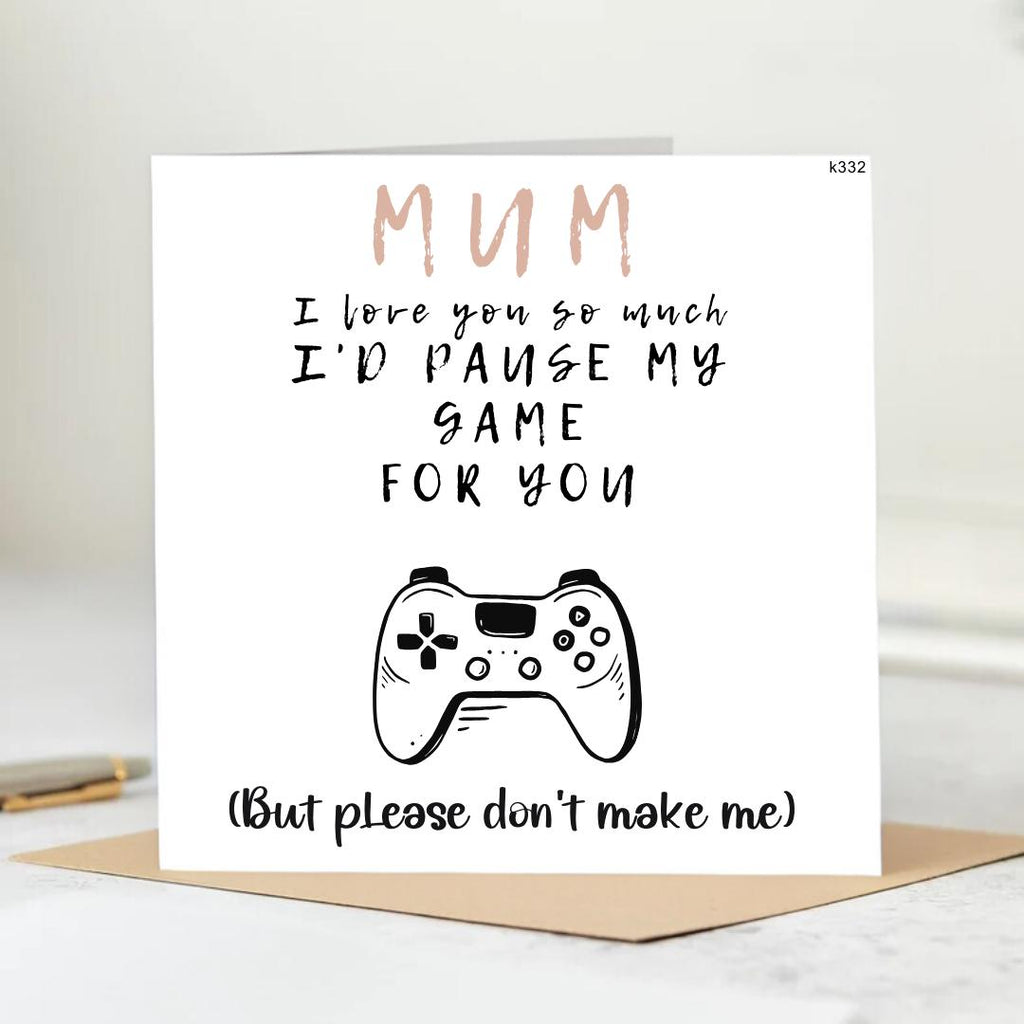 I'd Pause my game for you Mum - Funny Gaming Mum Birthday Card - Mum card from kids 6x6