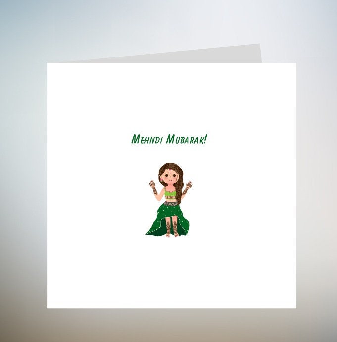 Mehndi Mubarak Card Mendi Card Desi Mehndi Card Congratulations green 6x6