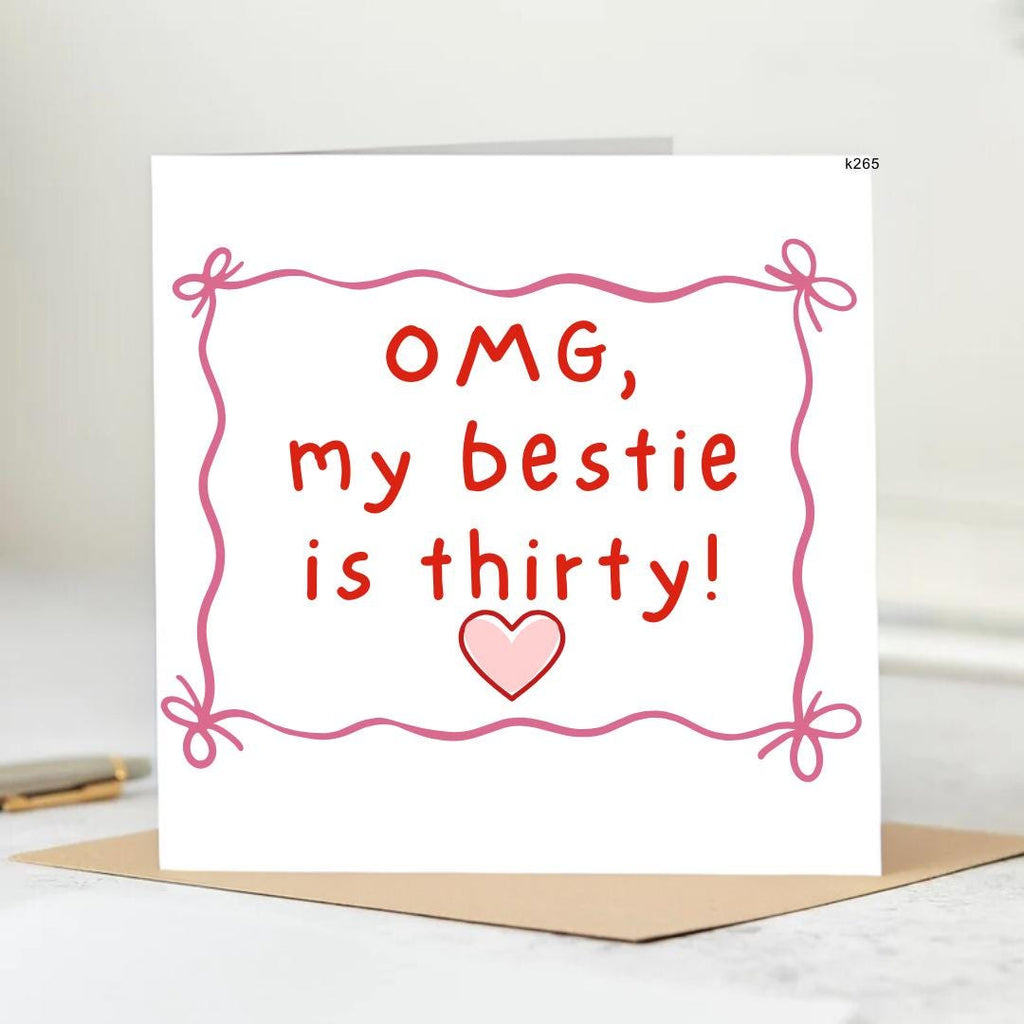 OMG My Bestie Is Thirty Card | 30th Birthday Age Card, Thirty Birthday Card, Bestie Card, Bestie's Thirtieth Birthday, 30th | 6x6