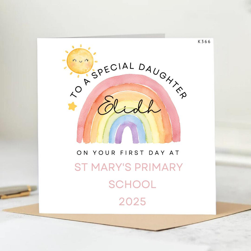 Personalised First Day Of School Card For Daughter, Good Luck First Day Of School Card, Happy 1st Day Of School Daughter, Back To School 6x6