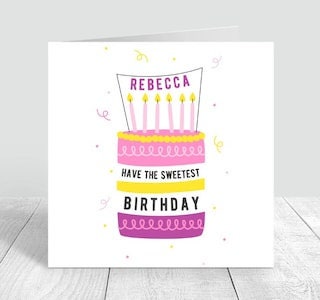 Personalised Happy birthday cake card, fun happy birthday card, illustrated birthday card 6x6