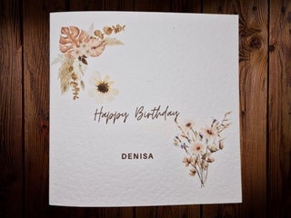 Personalised Name Birthday Card, Minimal Flowers Basic with white Envelope 6x6