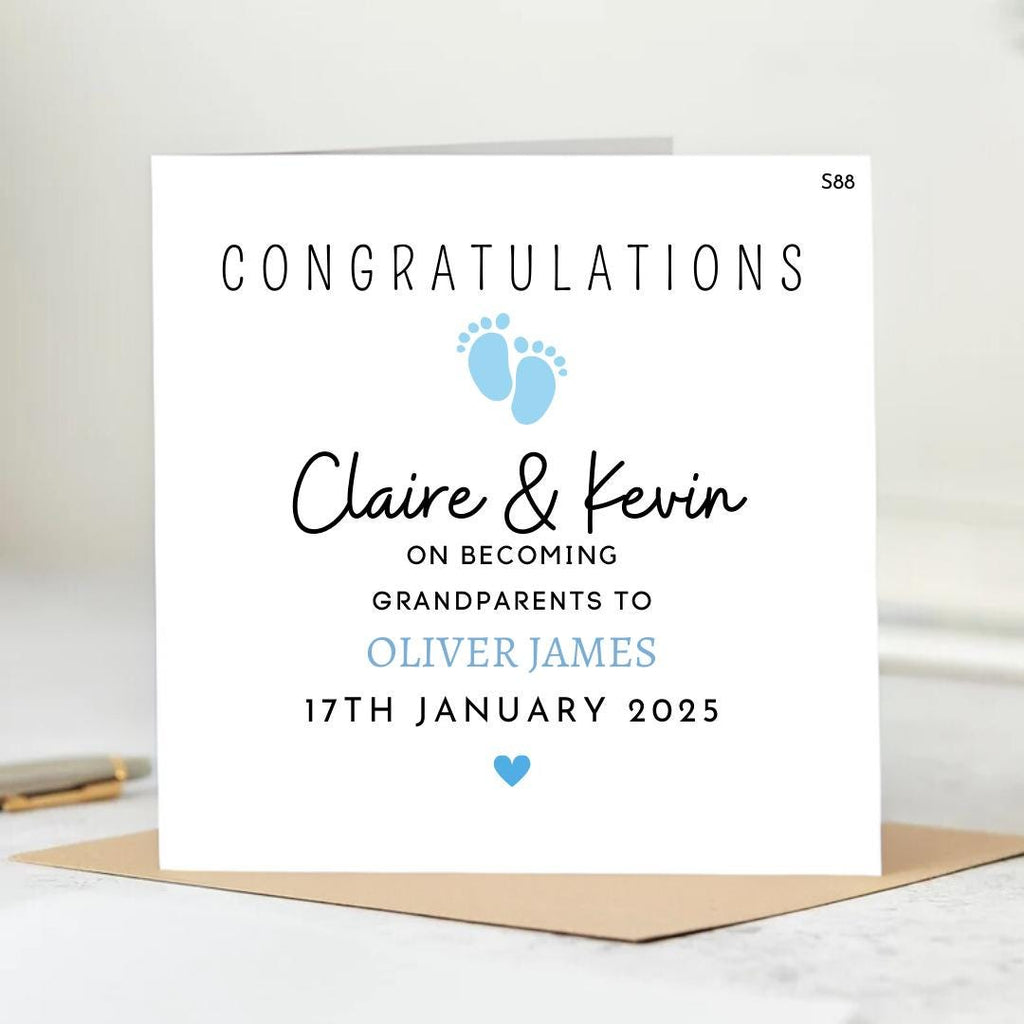 Personalised New Grandparents Card, Personalised New Grandparent Card, Congratulations on becoming grandparents card, Colour Options 6x6
