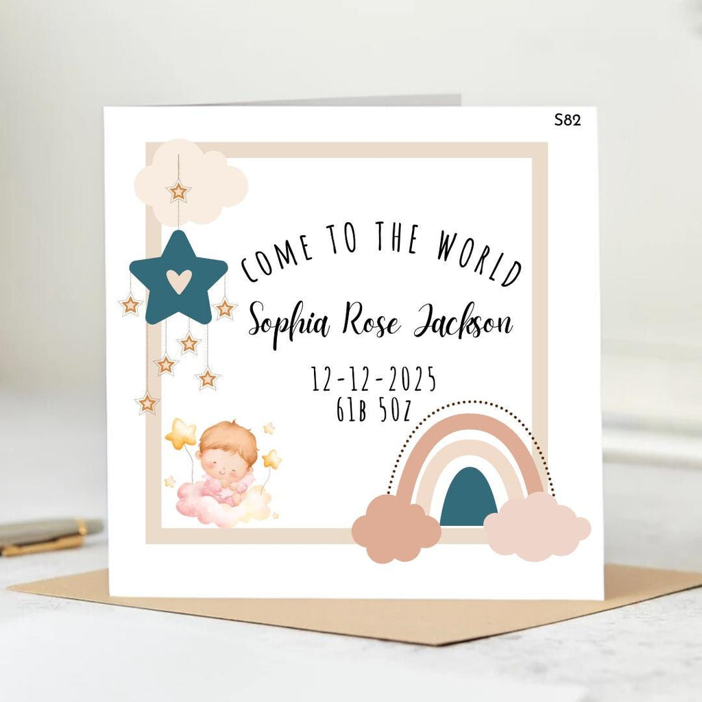 Personalized card, A Bright New Star Has Arrived — Welcome Sophia Rose, Warning: Cuteness Levels Off the Charts, Welcome Sophia! 6x6